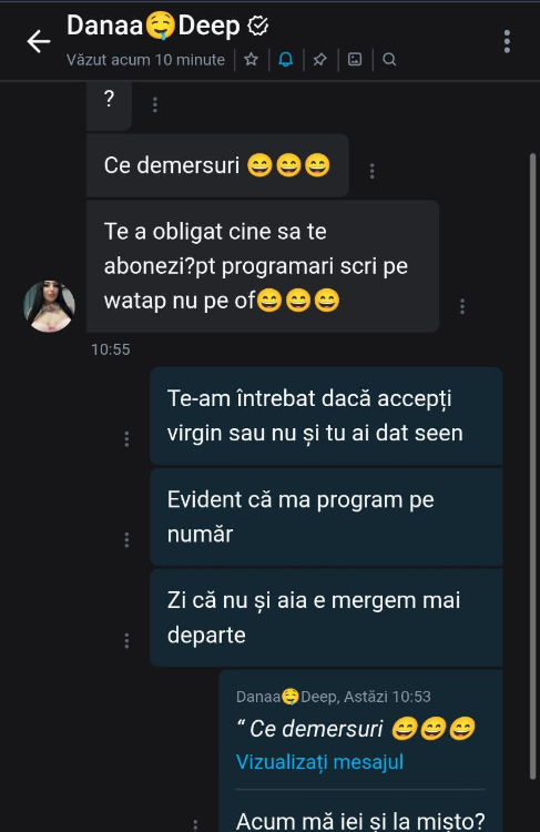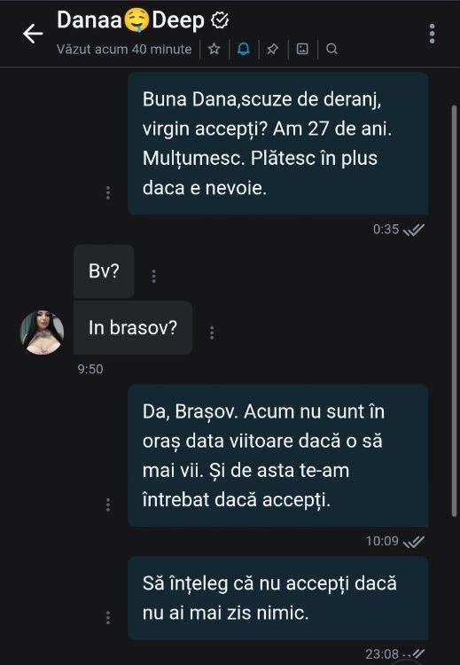 Am luat legatura cu @Valetina123 daca accepta asa ceva. O gasiti pe celalant vestit forum acolo nu ma lasa sa postez topicul Am luat legatura cu ea pe onlyfans crezand ca raspunde repede dar nu a fost asa, a dat numai seen. Eu am inceput demersurile de refund. Intre timp ma ia si la misto. Aveti grija de tepare de genul, sanatate la toti.